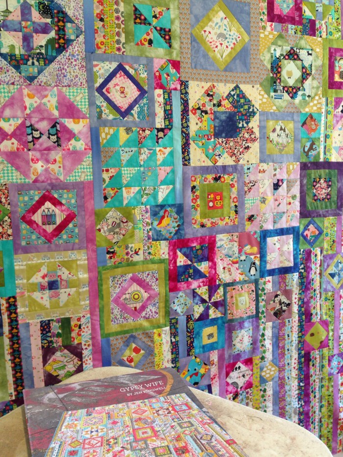Here is my version of Jen Kingwell’s Wanderer’s Wife* – made with hand dyed fabrics (courtesy of JKW), all the Kawaii Japanese fabrics from Pink Castle Fabrics (RIP) that I’ve been hoarding, with a sprinkle of fabric pulled from my stash to fill in the gaps